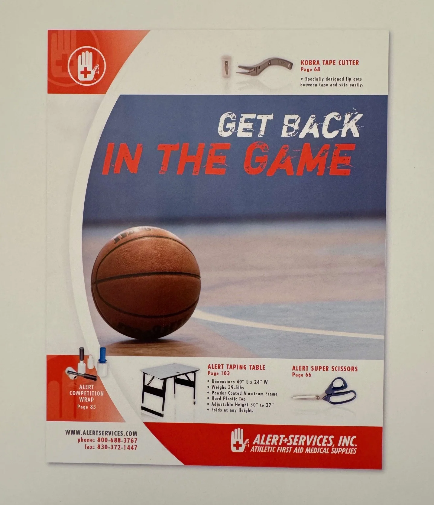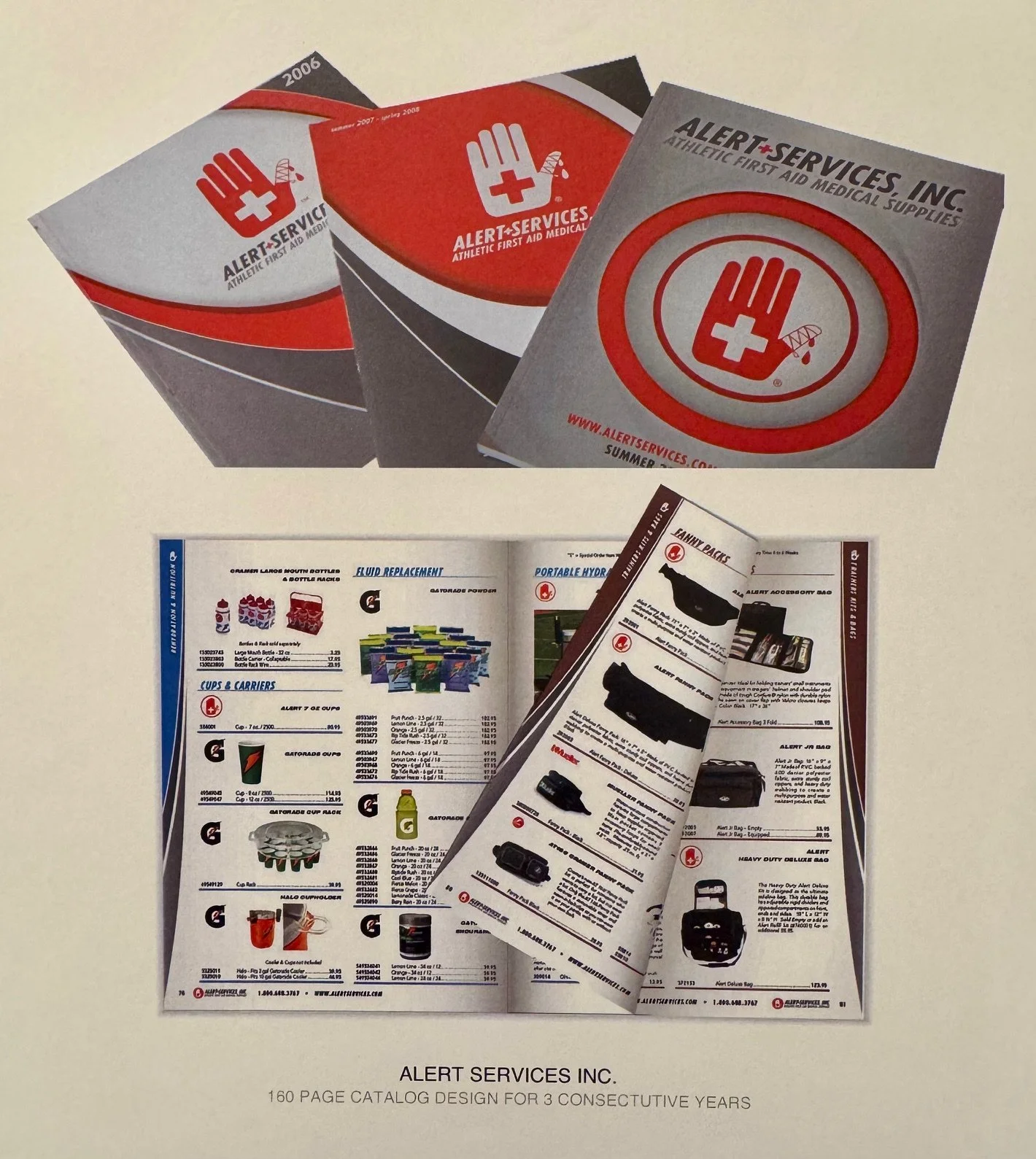 I designed a sports medicine catalog featuring over 200 products, as well as the company's brand identity and various advertising materials.