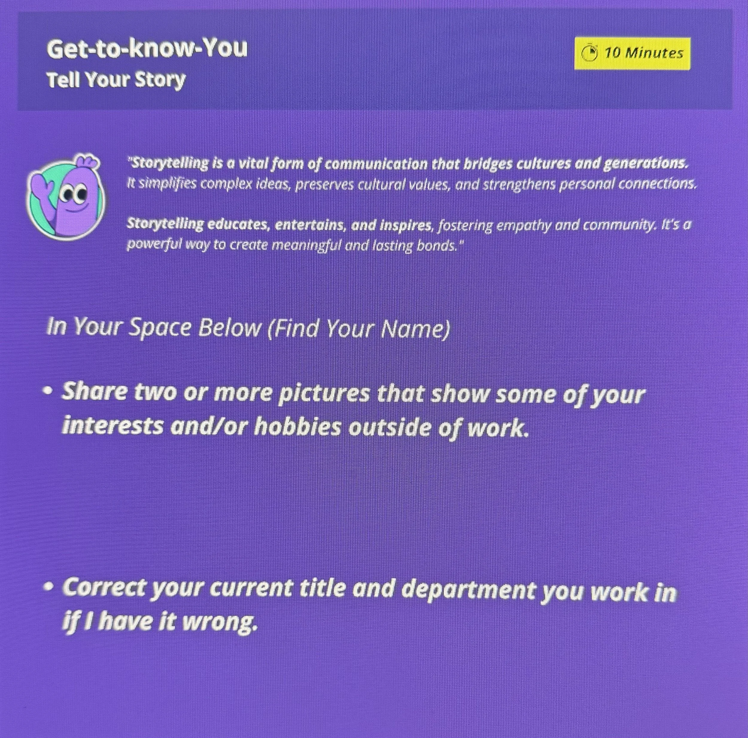 In sessions with participants who may not have worked together before, I start with an icebreaker to engage everyone early and set the tone for open, active participation.